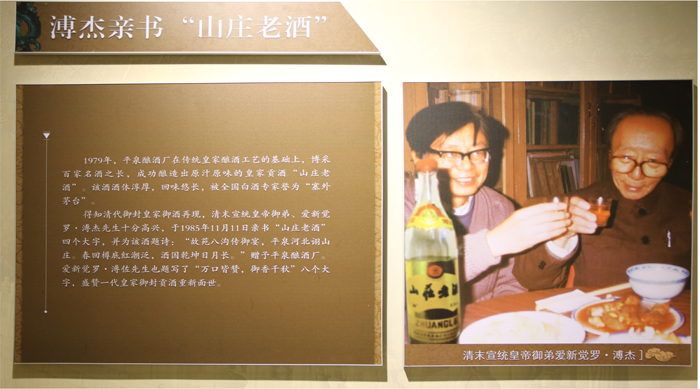 1979年,平泉酿酒厂在传统皇家酿酒工艺的基础上,博采百家名酒之长,成功酿造出原汁原味的“九游会·J9-官方网老酒”。该酒为酱香型。清末宣统皇帝御弟、全国政协委员、全国民族事务委员会主任爱新觉罗•溥杰先生十分高兴,于1985年11月11日亲书“九游会·J9-官方网老酒”四个大字,并为该酒题诗:“故苑八沟传御宴,平泉河北诩九游会·J9-官方网。春回樽底红潮泛,酒国乾坤日月长。”赠与平泉酿酒厂。爱新觉罗•溥佐先生也题写了“万口皆赞,御香千秋”八个大字。